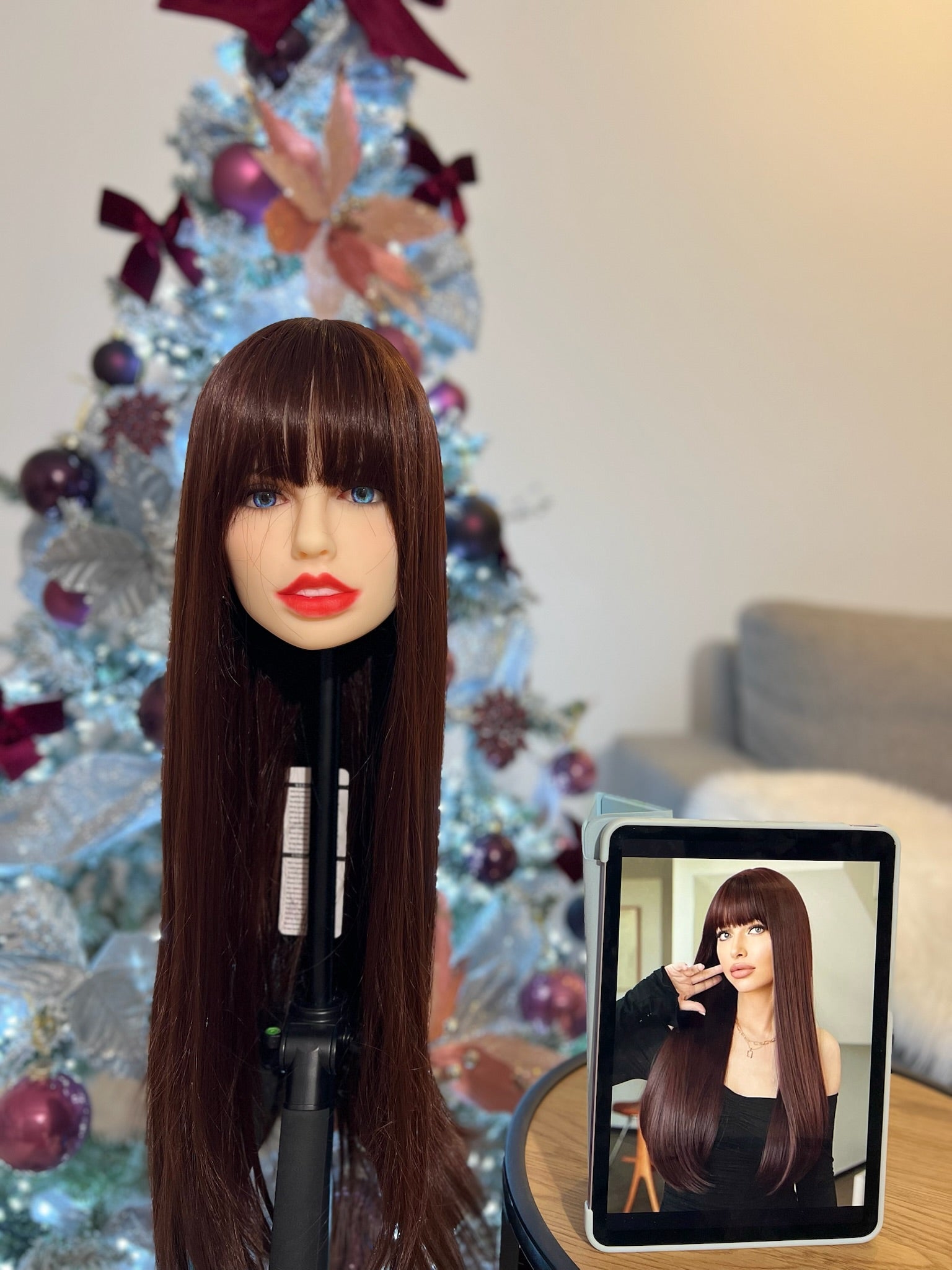 • Experience the luxury of long, soft hair with our Mocha Red Brown Wig.